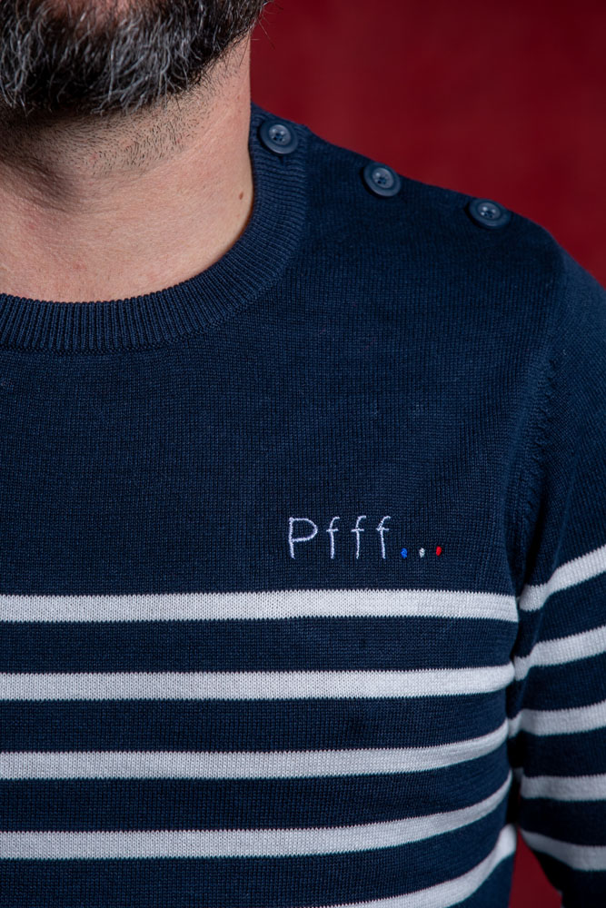 Le pull marin bleu foncé Pfff… est fabriqué à partir de tissus confortables. La belle conception de bretelles horizontales le rend très classique et adapté à un usage quotidien. Il peut être un parfait cadeau pour tout votre entourage, vos proches, ou vous-même ! Vous pouvez le porter en toutes circonstances.